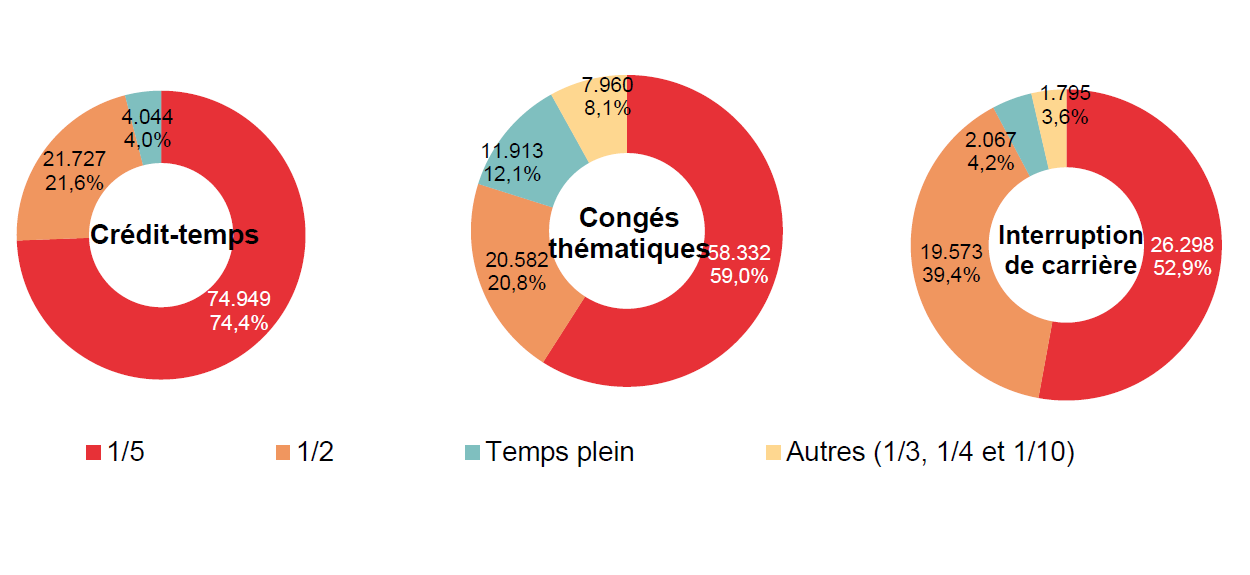 Des diminutions pour le crédit-temps et l'interruption de carrière, une augmentation pour les congés thématiques