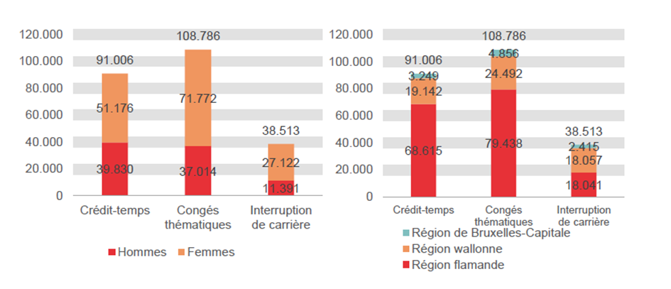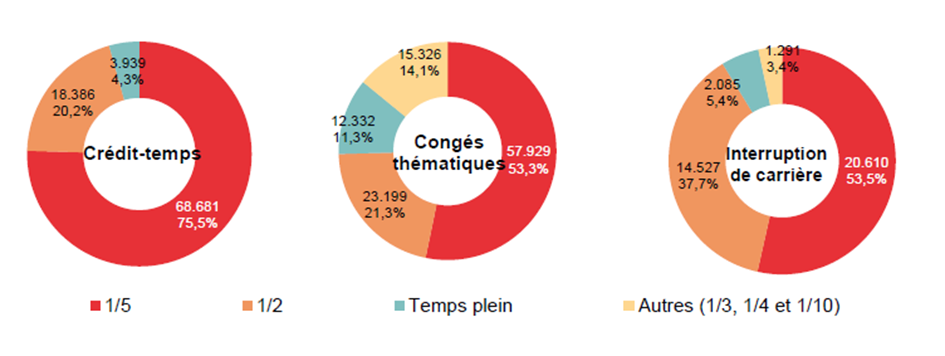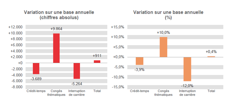Des diminutions pour le crédit-temps et l'interruption de carrière, une augmentation pour les congés thématiques