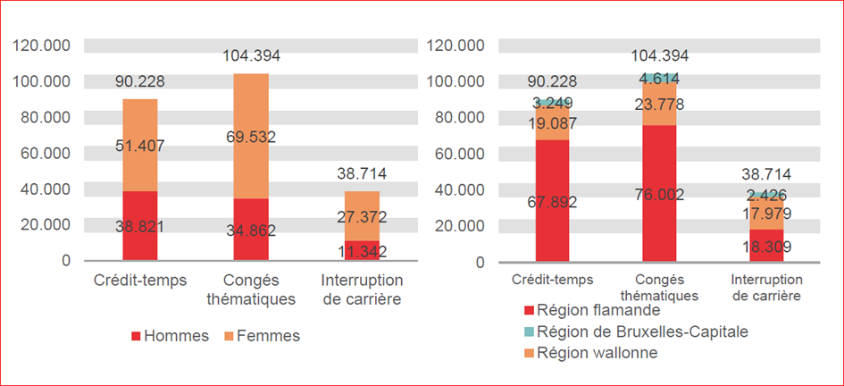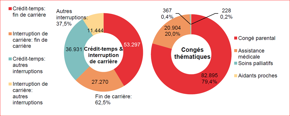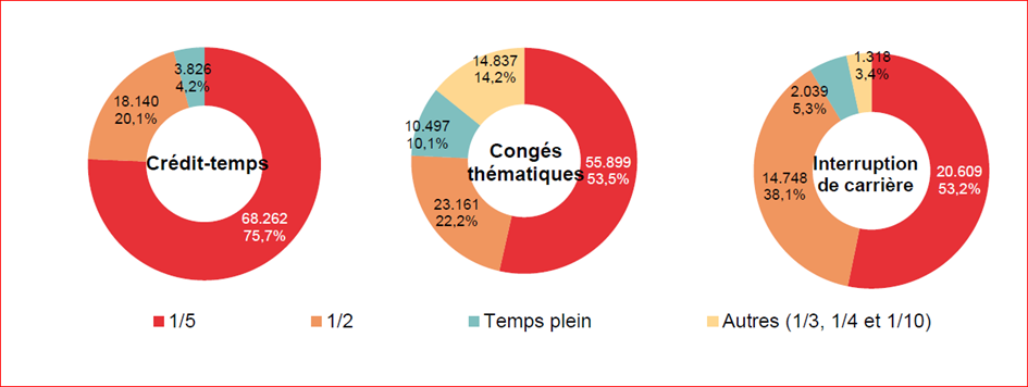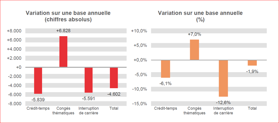 Des diminutions pour le crédit-temps et l'interruption de carrière, une augmentation pour les congés thématiques