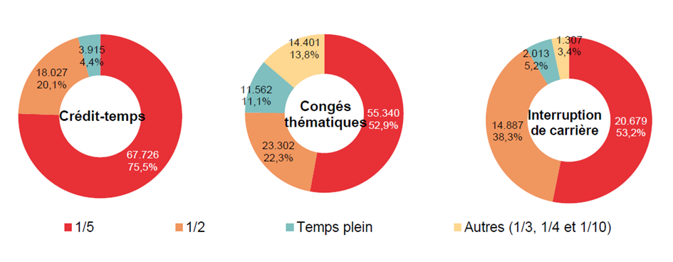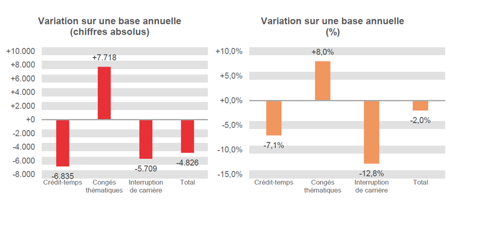 Des diminutions pour le crédit-temps et l'interruption de carrière, une augmentation pour les congés thématiques