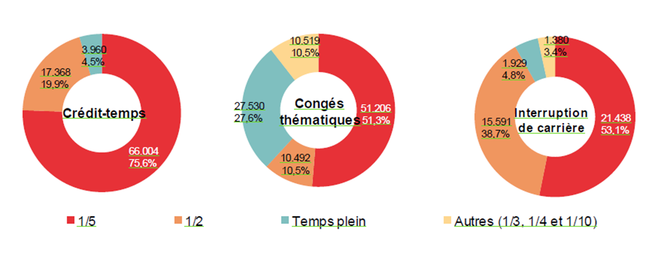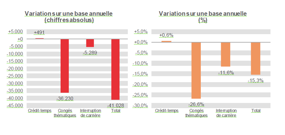 Des diminutions pour les congés thématiques et l'interruption de carrière, une augmentation pour le crédit-temps