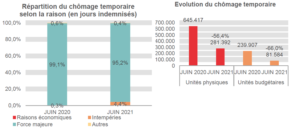 Le chômage temporaire à la suite de l’épidémie de CORONAVIRUS reste encore élevé en juin 2021, mais diminue