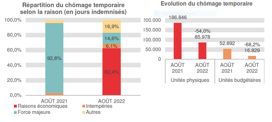 Pour un mois d'été, ces chiffres sont comparables à ceux de l'année 2016. Cependant, la part du chômage temporaire dû à la force majeure reste légèrement élevée, à 14,6%, alors qu'avant la crise, cette part est toujours restée bien en dessous de 10%.