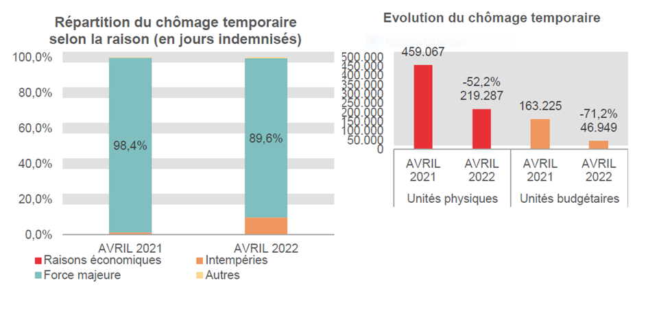 Le chômage temporaire diminue de 0,4% en avril 2022 par rapport au mois précédent