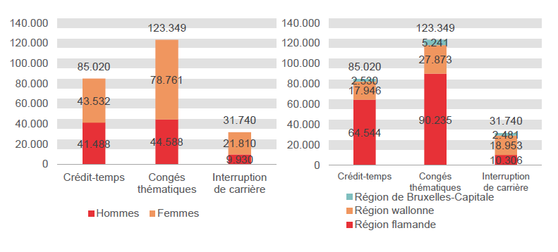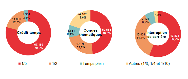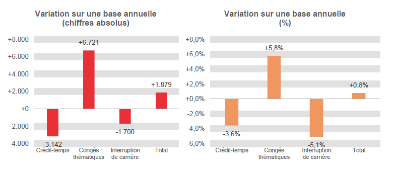 Des diminutions pour le crédit-temps et l'interruption de carrière, une augmentation pour les congés thématiques