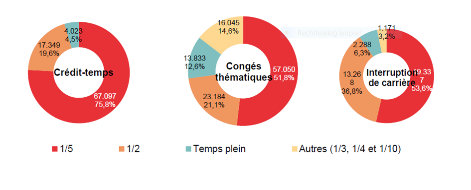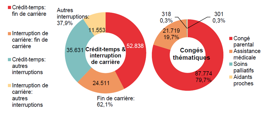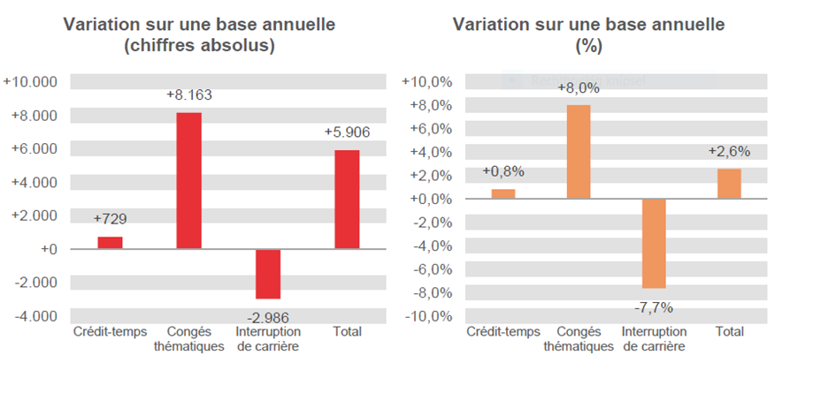 Une diminution pour l'interruption de carrière, des augmentations pour le crédit-temps et les congés thématiques