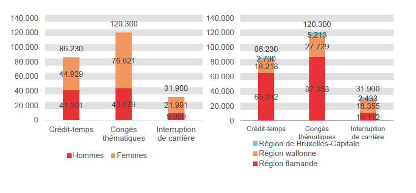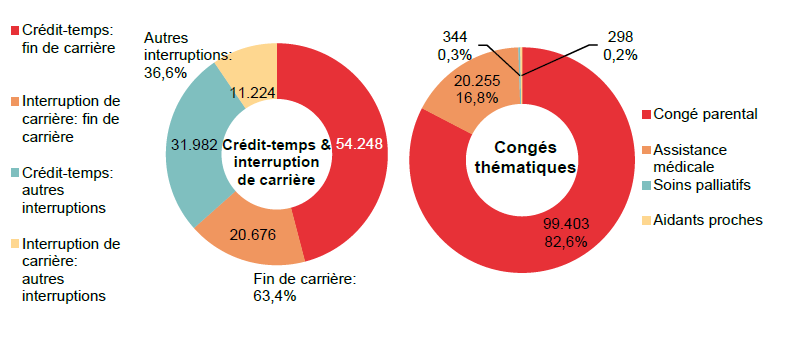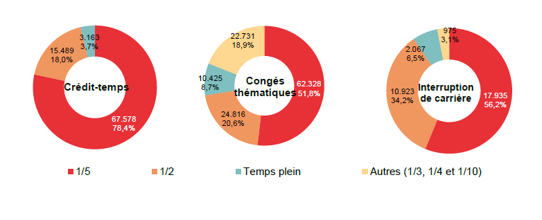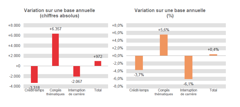Des diminutions pour le crédit-temps et l'interruption de carrière, une augmentation pour les congés thématiques