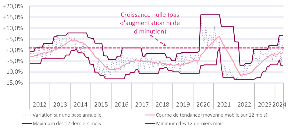 L’ONEM reçoit davantage de questions ces derniers temps sur la « fluctuation » du chômage indemnisé. Après avoir longtemps diminué, on observe des hausses sur une base annuelle en septembre 2023 (+2,0 %), mars 2024 (+6,7 %) et mai 2024 (+2,6 %), mais entre-temps, le chômage diminue à nouveau. Cela semble contradictoire, mais ces « fluctuations » sont provoquées par une stabilisation du chômage.