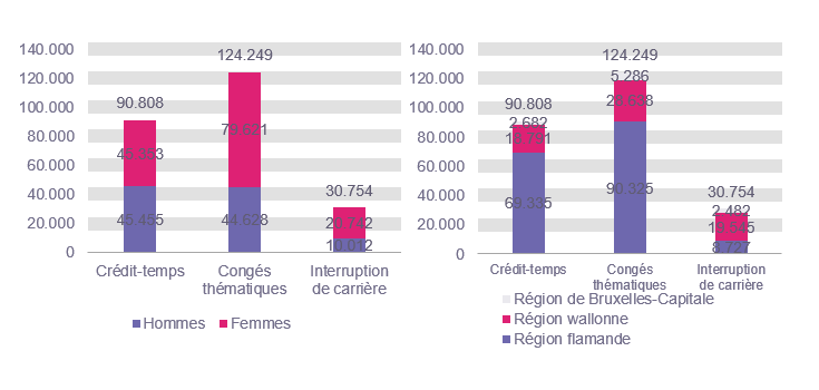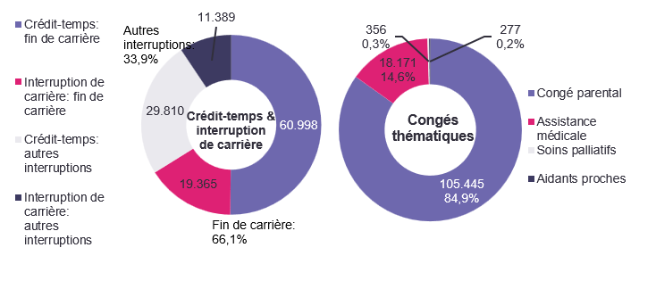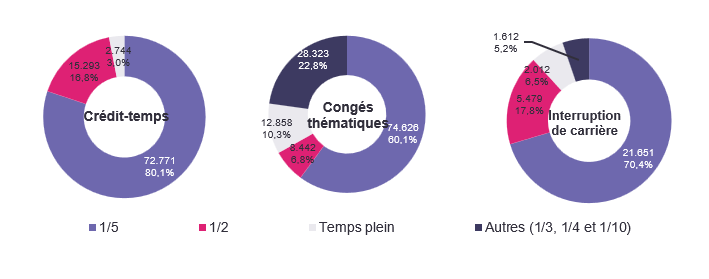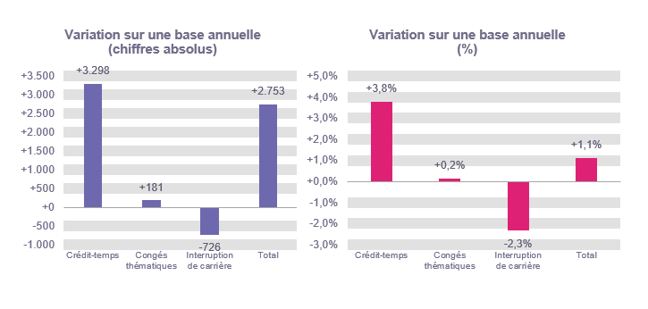 Une diminution pour l'interruption de carrière, des augmentations pour le crédit-temps et les congés thématiques