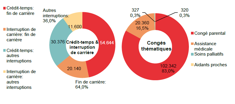 Des diminutions pour le crédit-temps et l'interruption de carrière, une augmentation pour les congés thématiques